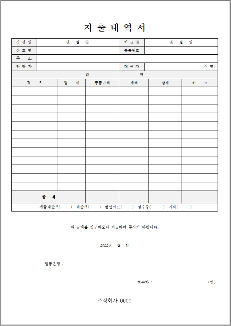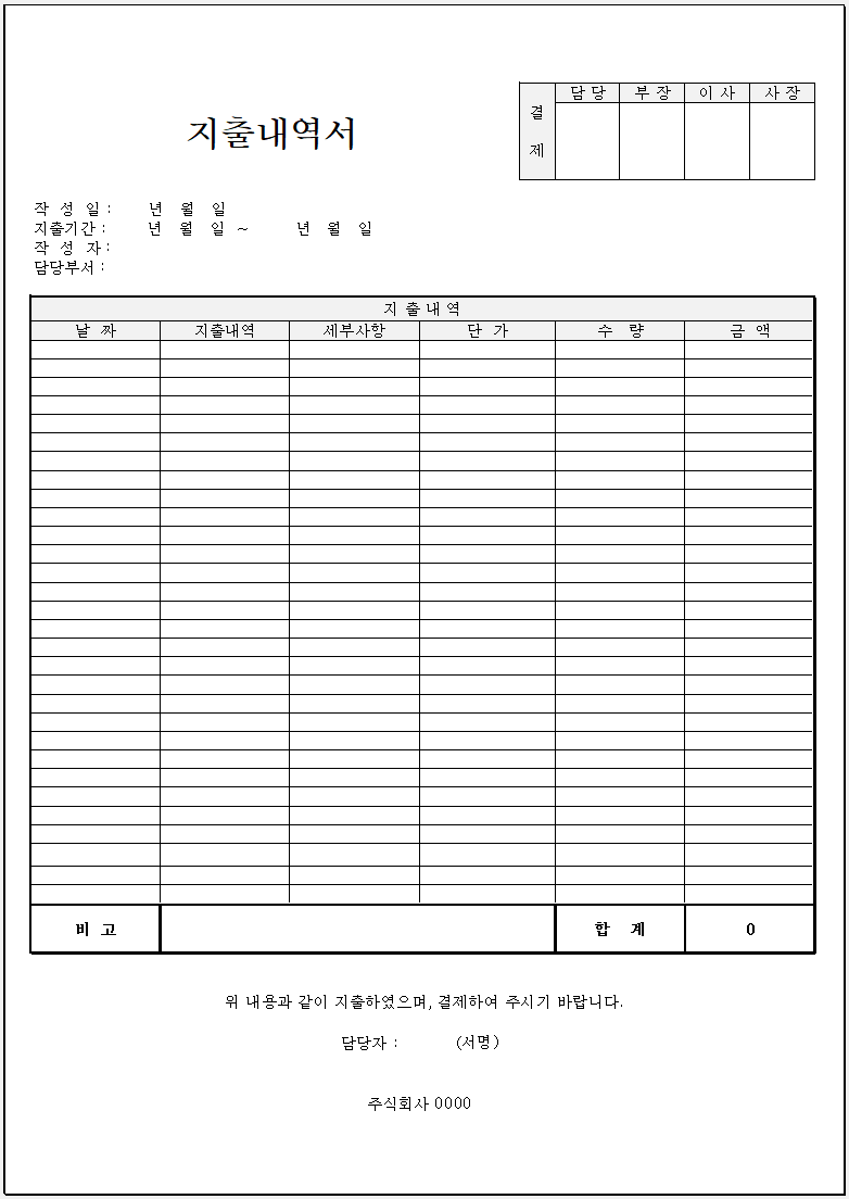 - 문서 제목: "지출 내역서"