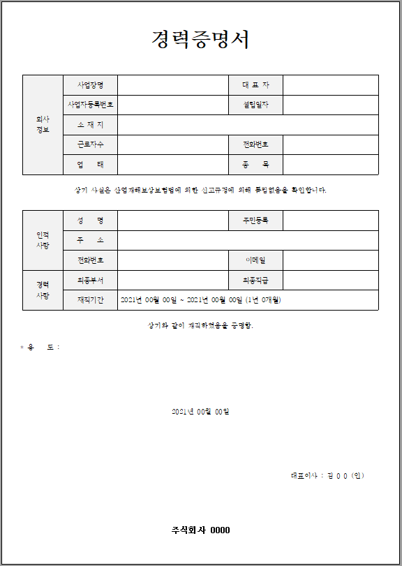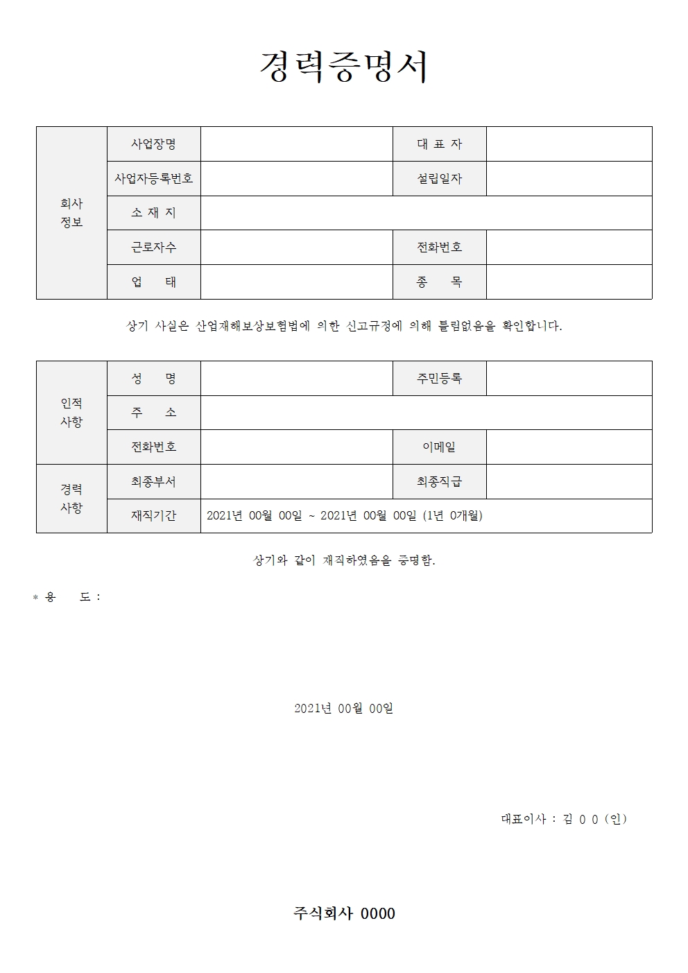 경력증명서 양식을 사용할 때는 퇴사 사유를 기재할지 여부를 사전에 협의하는 것이 중요합니다. 징계 해고와 같이 본인에게 불리한 내용은 근로자가 원하지 않는다면 기재하지 않는 것이 원칙입니다. 또한, 표준 공사 계약서나 일반 재직증명서와 달리 경력증명서는 과거의 기록을 증명하는 것이므로 날짜 오타가 없도록 건강보험자격득실확인서 등과 대조해 보는 것이 좋습니다. 무료 경력증명서 양식 파일을 활용하더라도 제출처에서 요구하는 특정 항목이 있는지 반드시 확인하시기 바랍니다.