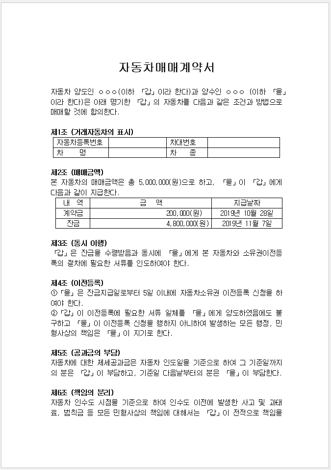 중고차 매매 계약서는 차량을 거래할 때 법적 보호를 받을 수 있는 중요한 문서입니다. 계약서를 정확히 작성하면, 차량의 소유권 이전, 거래 조건, 분쟁 발생 시 해결 방법 등을 명확히 할 수 있습니다. 이 글에서는 중고차 매매 계약서 양식 다운로드 방법과 작성법을 안내드리겠습니다.