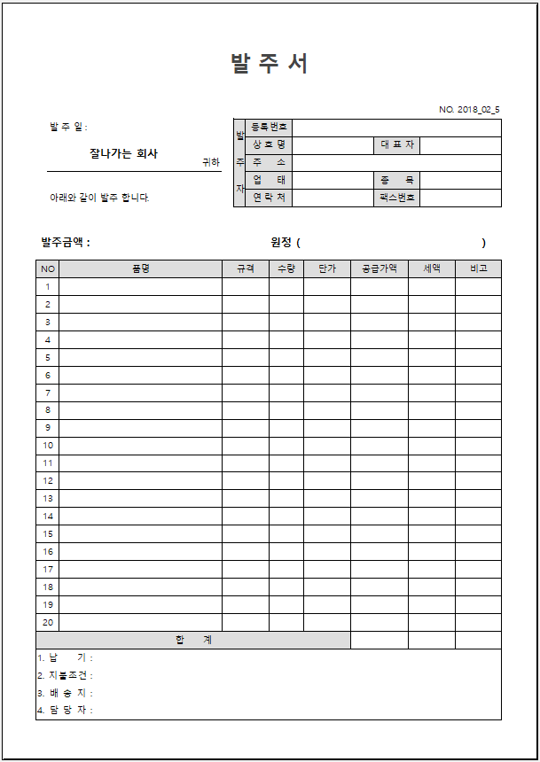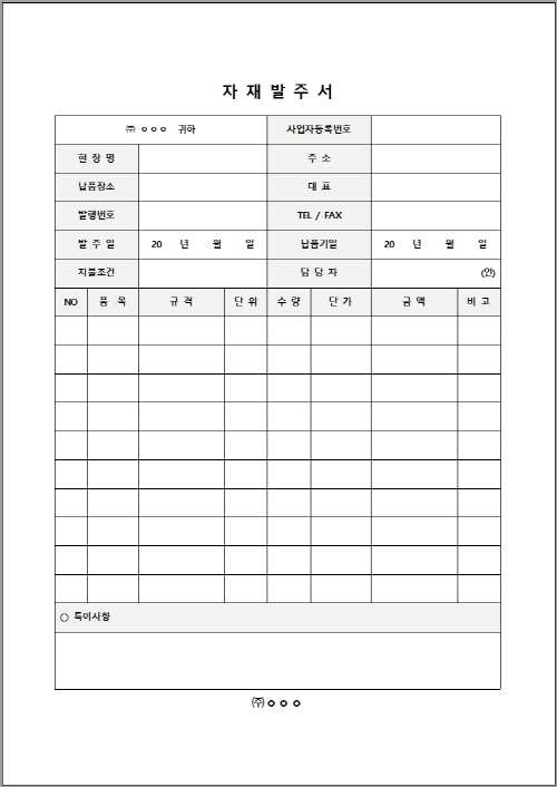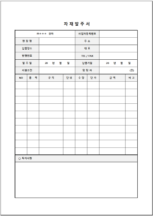 이렇게 회사에 맞게 수정한 양식을 기본 발주서로 활용하면 업무 처리 속도를 높일 수 있다.