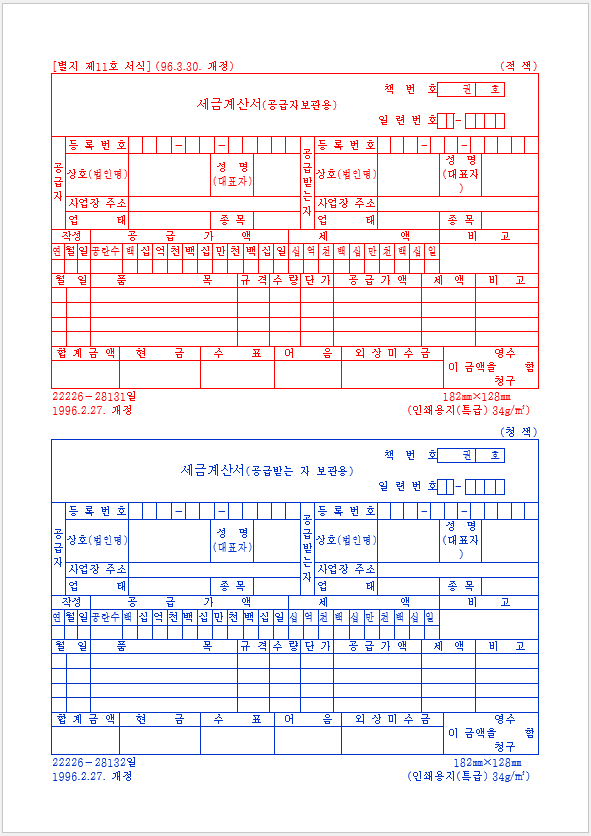 수기 세금계산서 양식 무료