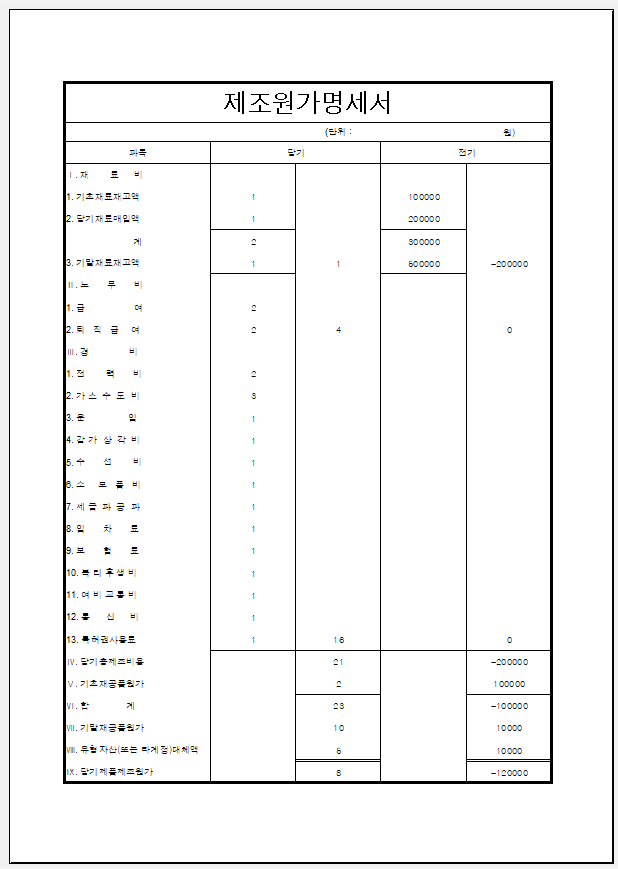 - 문서 제목: "원가 계산서"