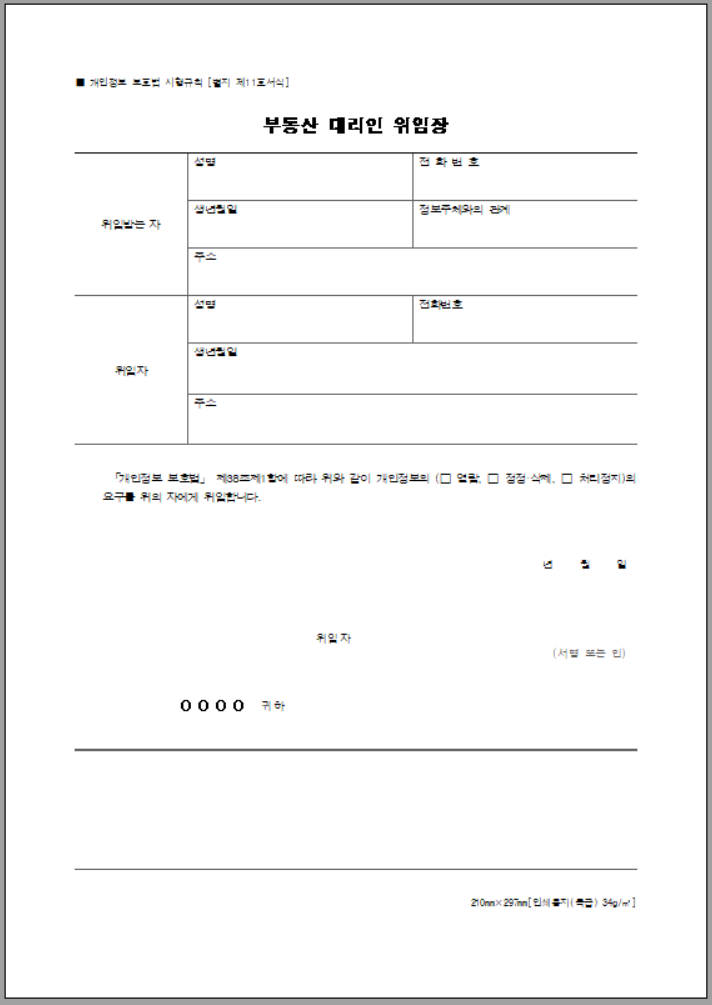 대리인 위임장 양식이란?
