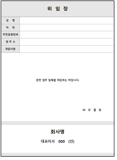 위임장 양식 무료 다운로드
