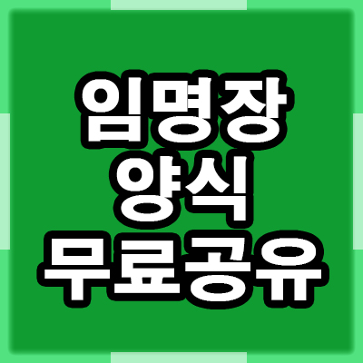 아래에 올려 두었으므로, 임명장 양식을 무료로 다운로드하실 수 있습니다. 압축파일 형태로 제공하며 압축파일 비번은 1357913579로 설정해 두었으니 참고하시고 이용하시면 됩니다.