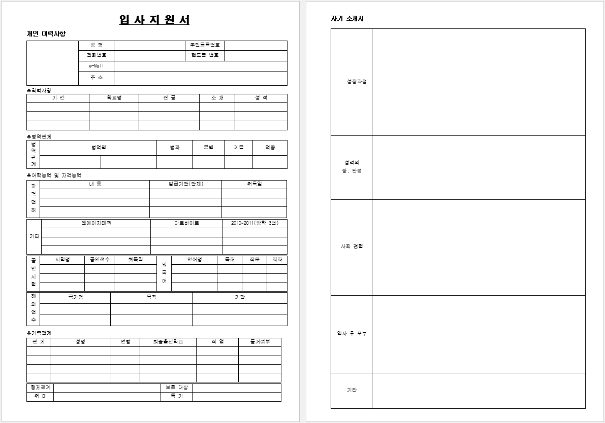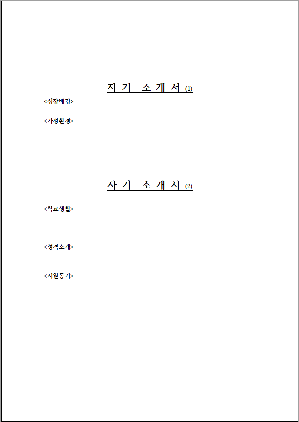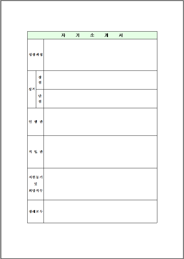 자기소개서 양식 무료 서식