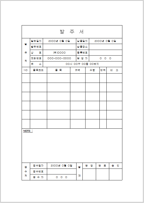 자재 발주서 양식 무료 다운