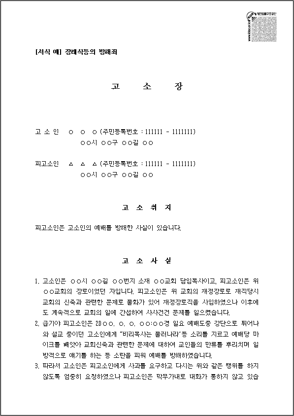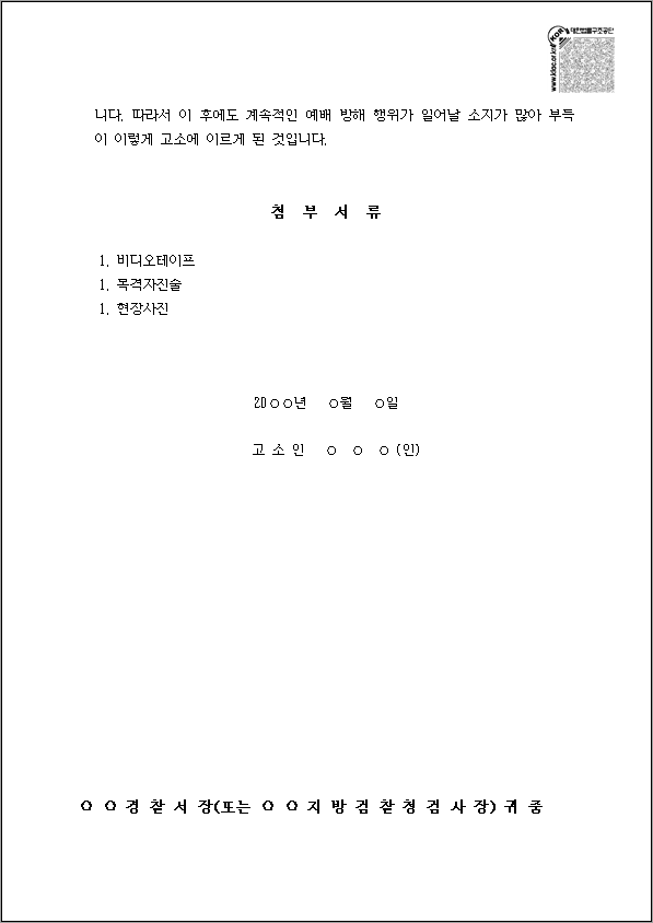 장례식 등의 방해죄 고소장 양식 다운