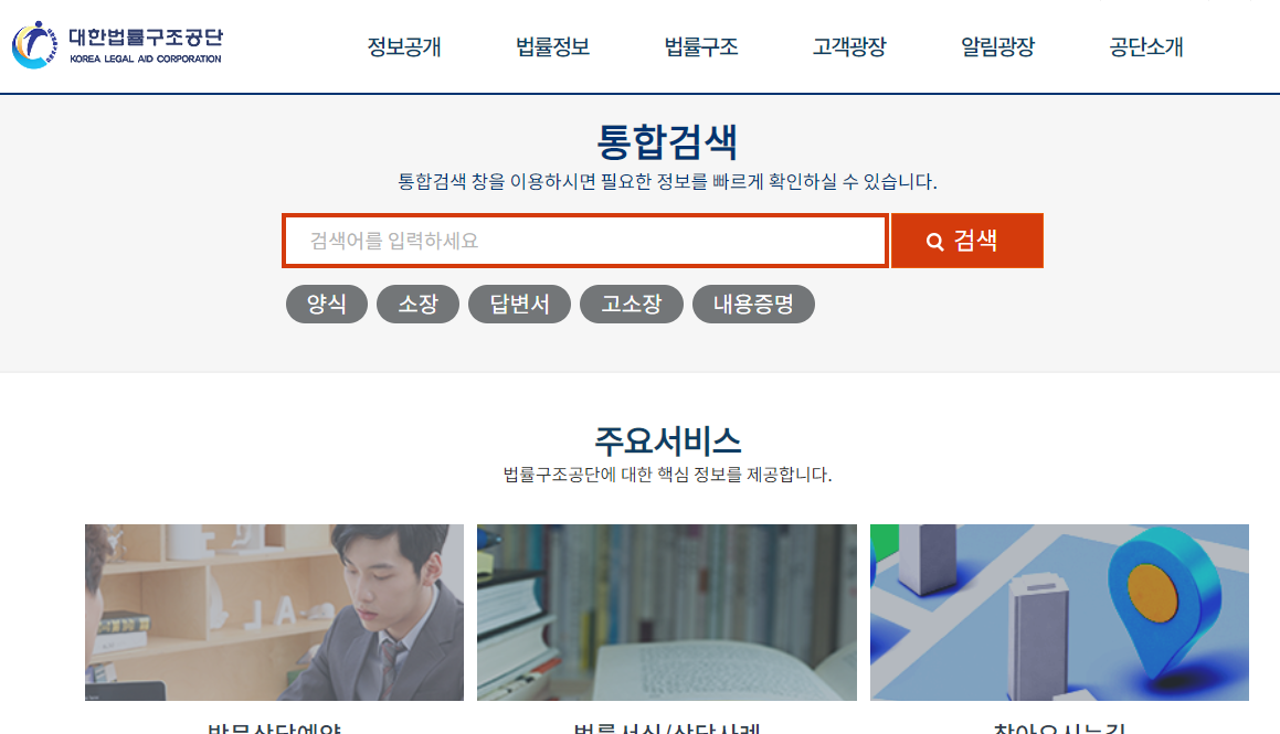 법률구조공단 홈페이지 링크를 공유합니다.