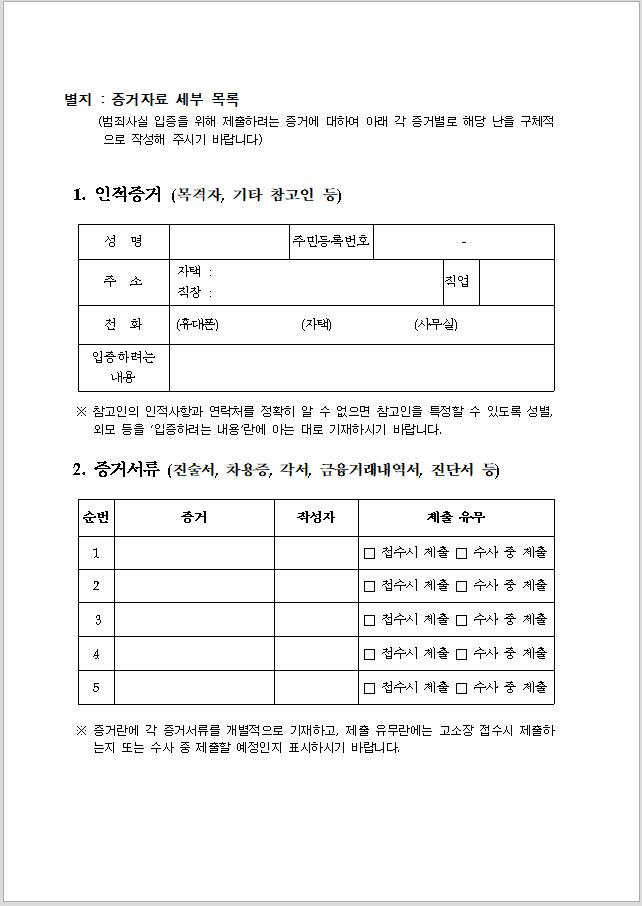 - 사건이 발생한 날짜, 시간, 장소, 상황을 구체적으로 적어야 함.