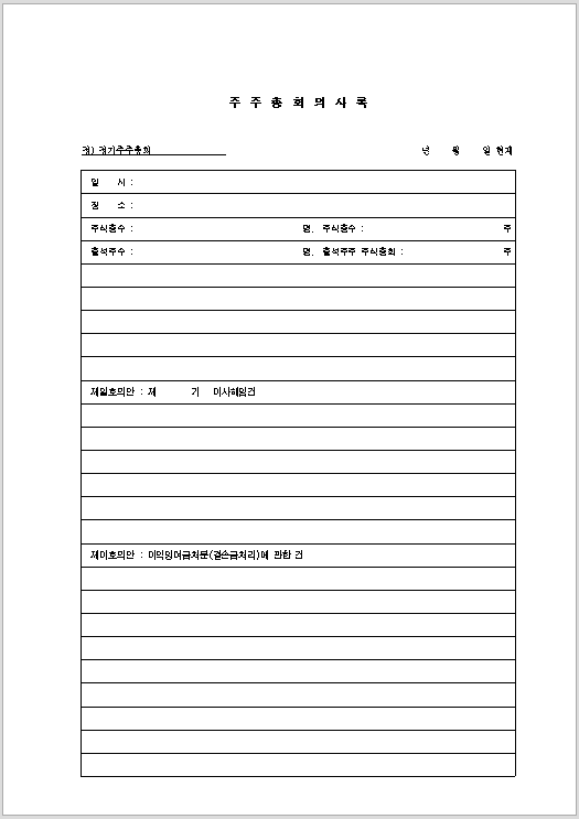 주주 총회 의사록 양식 무료 다운로드
