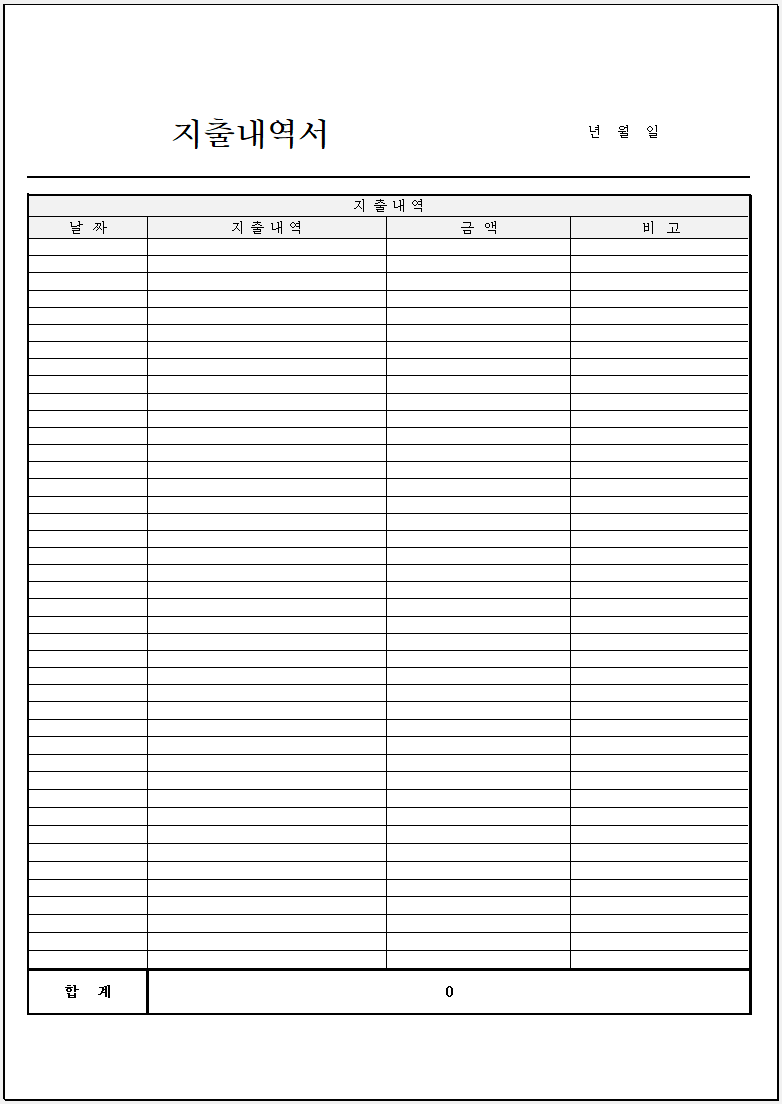 지출 내역서를 작성할 때 반드시 포함해야 하는 주요 항목은 다음과 같습니다.