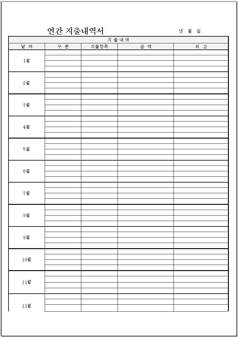 연간 지출 내역서 예시