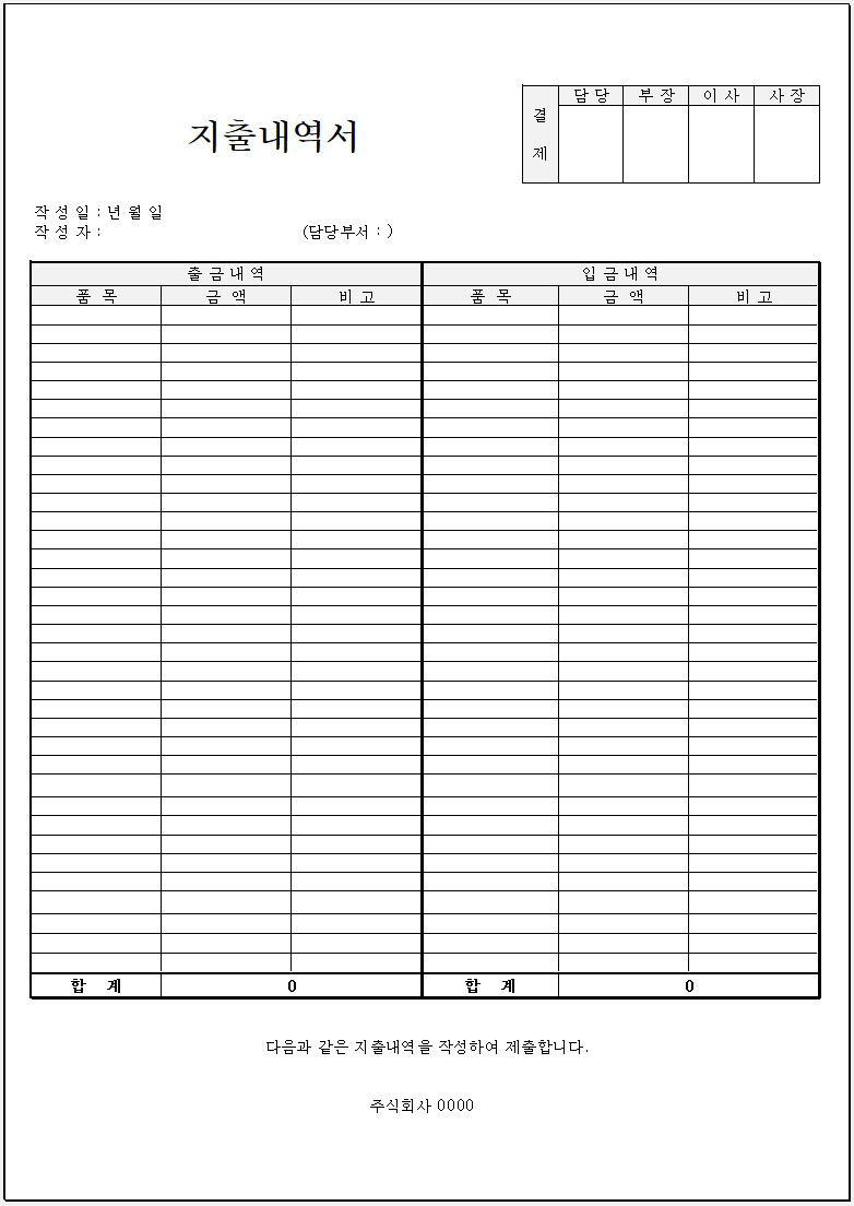지출 내역서 무료 다운로드 (엑셀 3종)