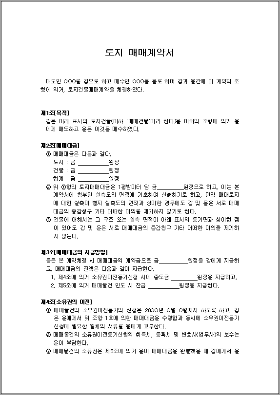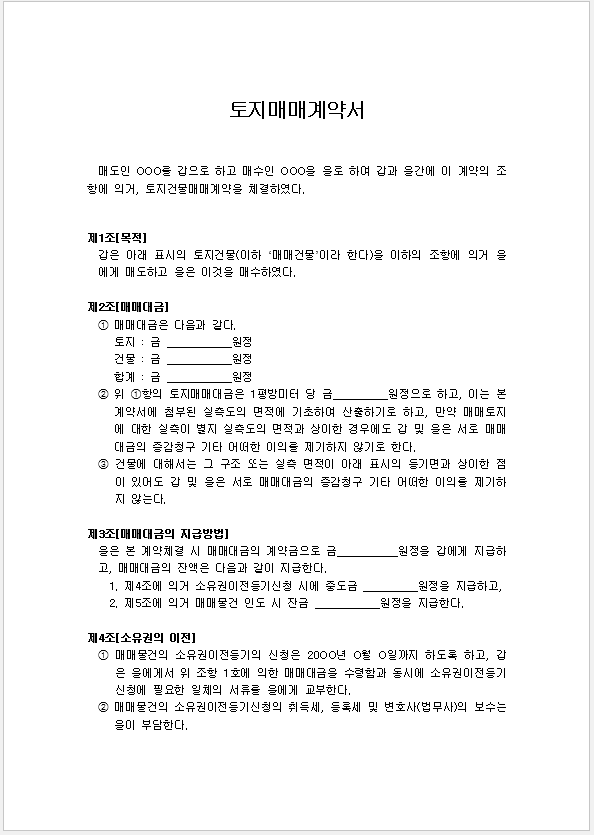 토지 매매 계약서 무료 다운로드 (한글, 엑셀 서식)