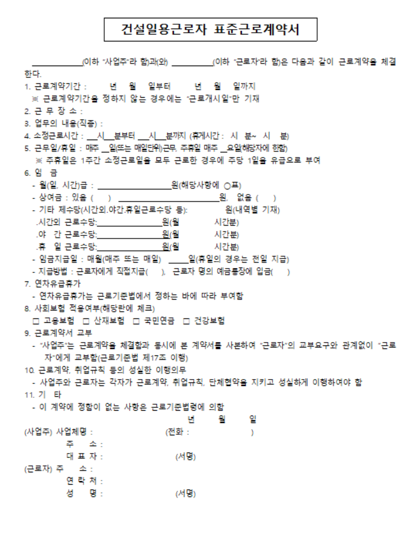 오늘은 우리나라에서 많이 도입되어 있는 외국인 노동자에 대해서 외국인 표준 근로계약서 양식을 공유해 보도록 하겠습니다. 무료 서식을 공유하는 것이니 필요한 분들은 참고하시기 바랍니