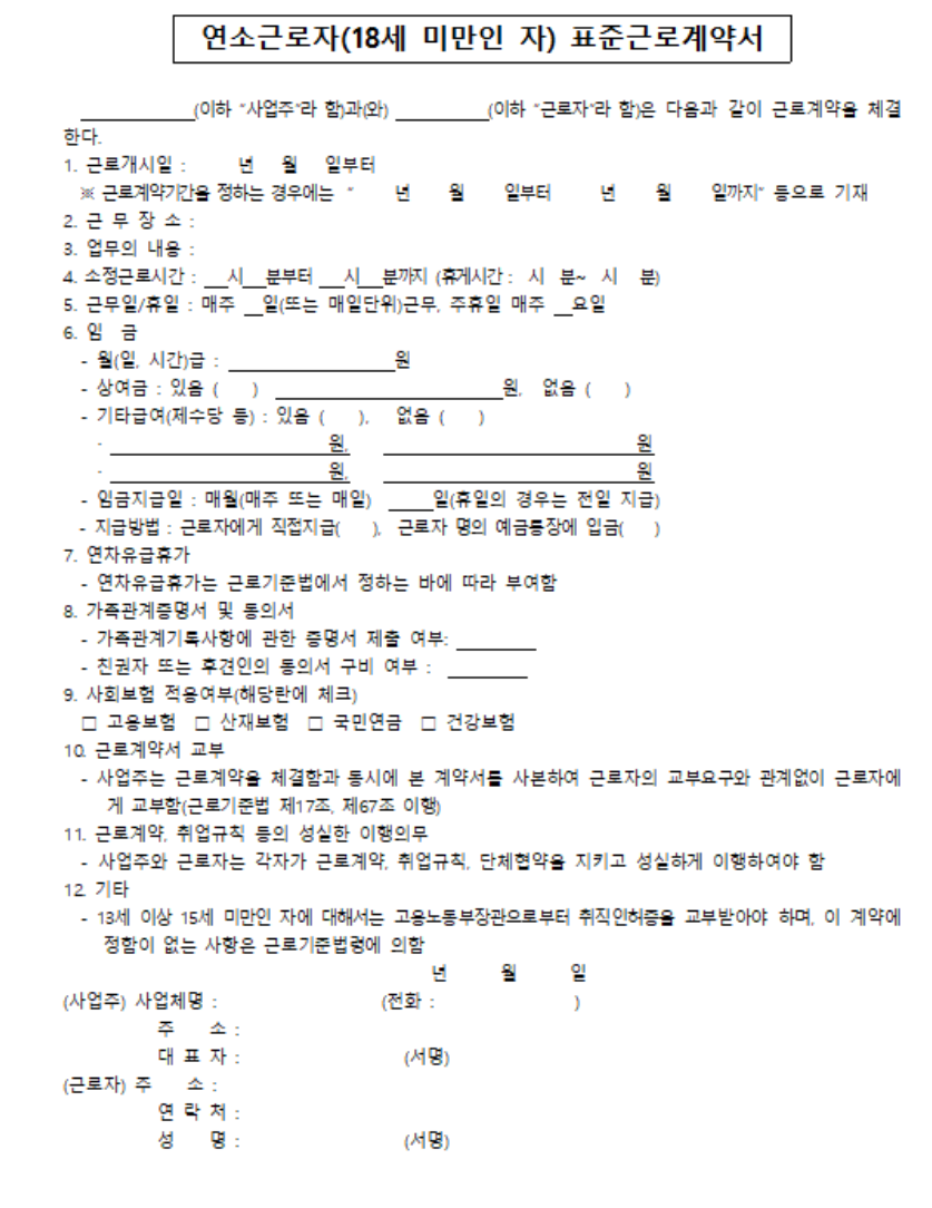 고용노동부 표준 근로계약서 양식