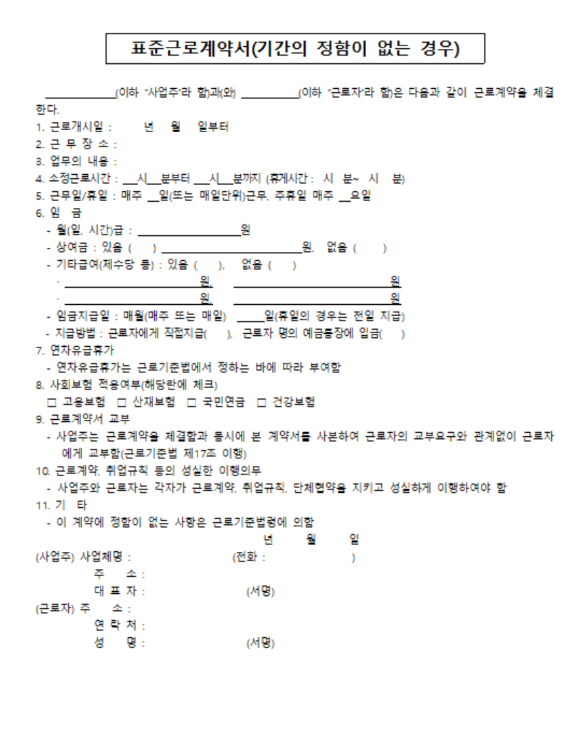 표준 근로계약서란 무엇인가