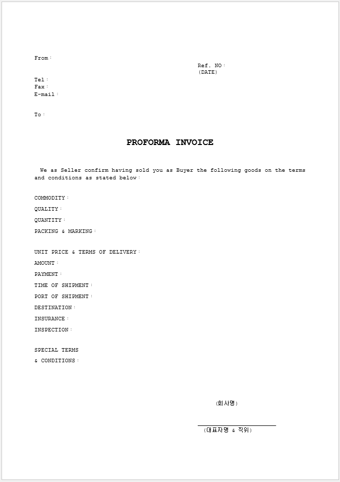 프로포마 인보이스 필수 항목