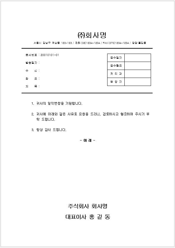 회사 공문 양식 다운로드 (한글, 워드, 엑셀)